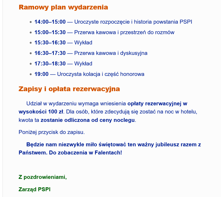 Poniżej dane dostępowe i plan Nadzwyczajnego Walnego Zebrania Członków PSPI: